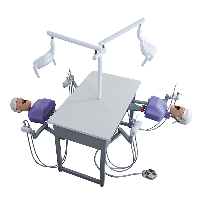 Product Overview: Designed for dental universities, training centers, and private clinics, this Dental Training Simulator Workbench offers a comprehensive solution for pre-clinical education. This dual-user station allows two students to practice simultaneously, maximizing laboratory space efficiency. Engineered for durability and safety, it replicates a realistic clinical environment, enabling trainees to master procedures on high-fidelity phantom heads before treating real patients.